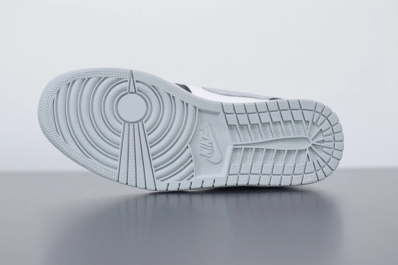 The week has a lot of Jumpman boots and runners. For example, the Jordan 1 Mid Chicago Red Black Toe and Green Purple are racing side by side with this Smoke Grey. Who’ll win is not our concern. We just want to win the sneaker fashion races with the best one! So, this minimalist yet striking theme seems like an excellent idea. Butter-soft leather overlays of this silo are black on the front, back, and the eyelets. As a result, the Nike Swoosh, tongue tab, and the toe-box have grey tones. The wings and ball embroidery branding pops on the heel to keep up the glory. Finally, a black Jumpman on the tongue and white midsole finish the look.