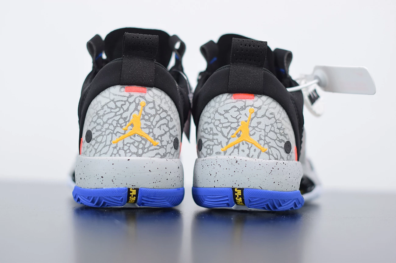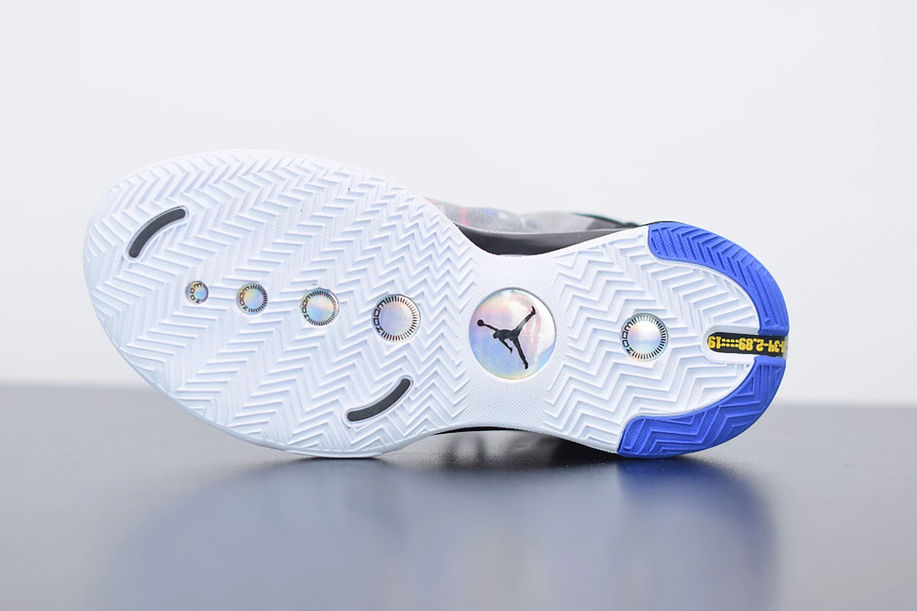 Its last QS edition was spotted combining patterned treatments reminiscent of the Air Jordan 3 and Air Jordan 7, and the last time it showed out, a “White Cement” theme was teased. Bringing to our attention more of the former, the hoops-ready silhouette is indulging in more retro graphics to take over this forthcoming variation. Beneath its transparent upper film, lies a mosaic of abstract patterns which have now been reworked in a Barcelona sweater “Nothing But Net” color scheme. A stealthy finish is applied to its throat and ankle overlays, and its heel counter translates Jordan Brand’s signature cement print layered with a yellow Jumpman logo on top. Moreover, its midsole piece has been ornamented with a speckled exterior for added flair.
