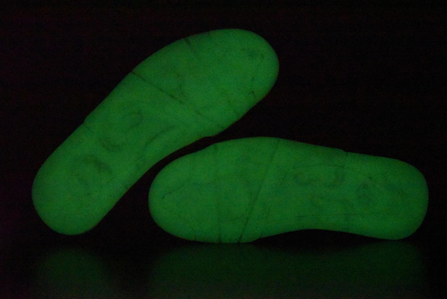 This is coupled with street artists signature XX logo on the heel counter, that is once again paying homage to his companion work. This also reappears on the hang tag of the shoe. All of this sits on top of a icy sole that glows in the dark when the lights are turned off.