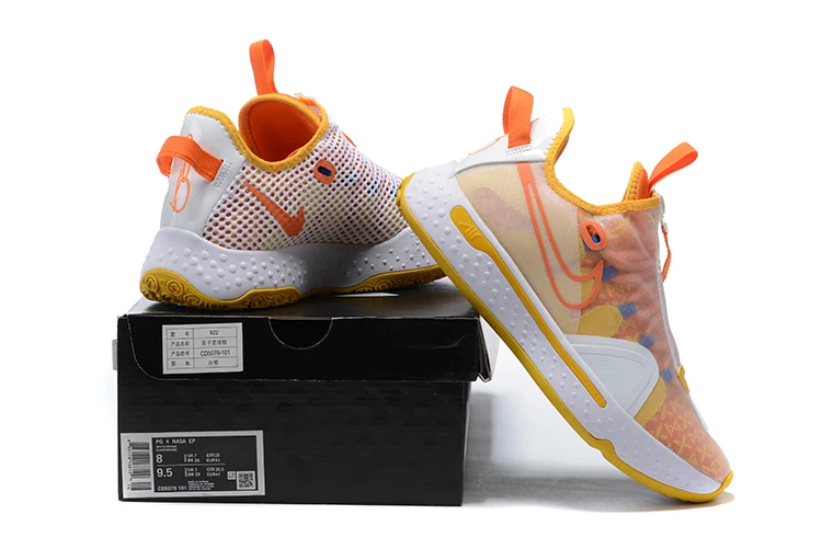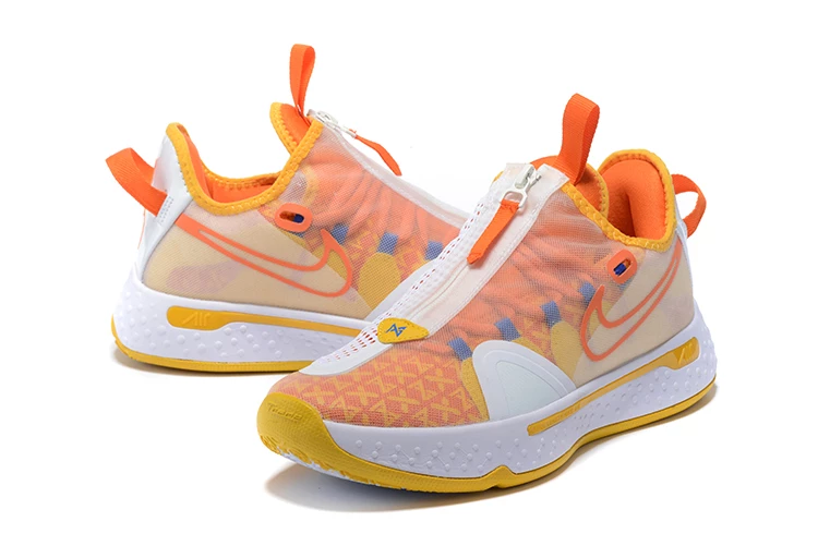 This offering of the Nike PG 4 features a mix of Orange tones throughout its entire upper with a sheer mesh shell. Other details includes Blue eyelets, Gatorade branded insoles atop a White midsole and rubber outsole.