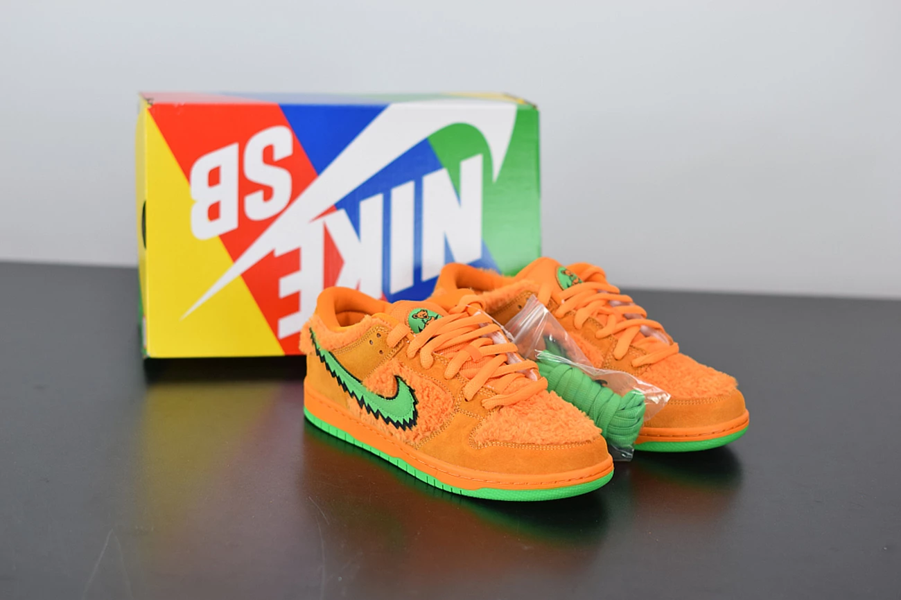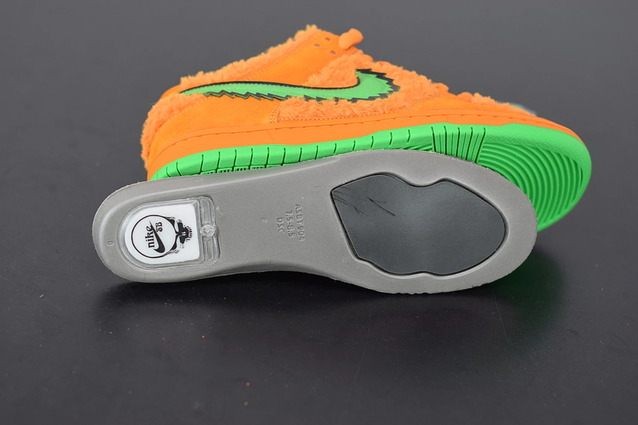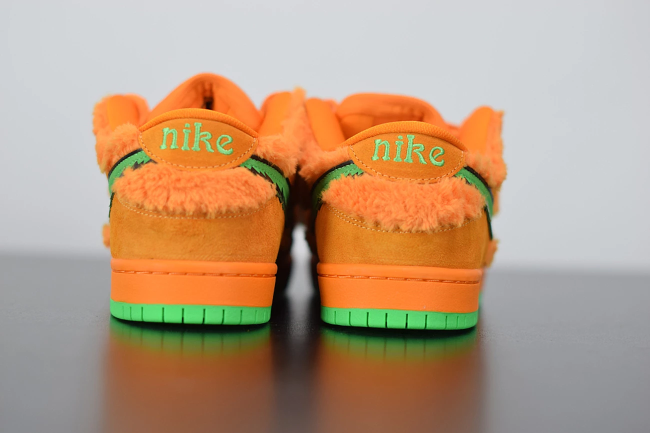 this orange Nike SB option isn’t releasing again. Yet, its product shots are a nice tease for anyone who struck out, especially considering the pair is now fetching over 2700 percent its $110 USD retail price. As with adjacent iterations, the “Orange Bear” release dons faux fur at the toe box, midfoot, and collar surrounded by soft suede. Tongues, laces, and midsoles indulge in these hairy-fabrics’ citrus hue, while serrated profile Swooshes, branding on the tongue and heel, and modified outsoles complement the titular tone in “Green Fury”.