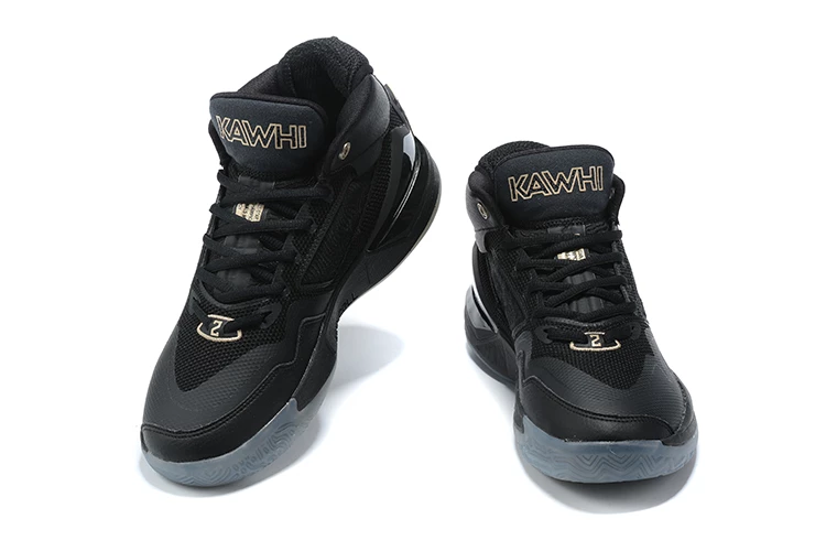this new colorway of Kawhi Leonard’s signature sneaker dons an all-Black upper that’s then sharply contrasted by the Gold accents noted on areas such as the tongue branding, heel branding, the #2 accent above the toeboxes and the list of Kawhi’s accomplishments on the lower portion of the tongue.