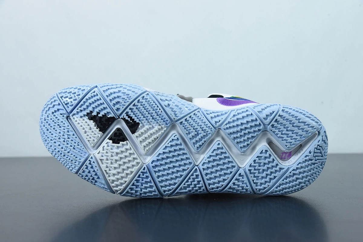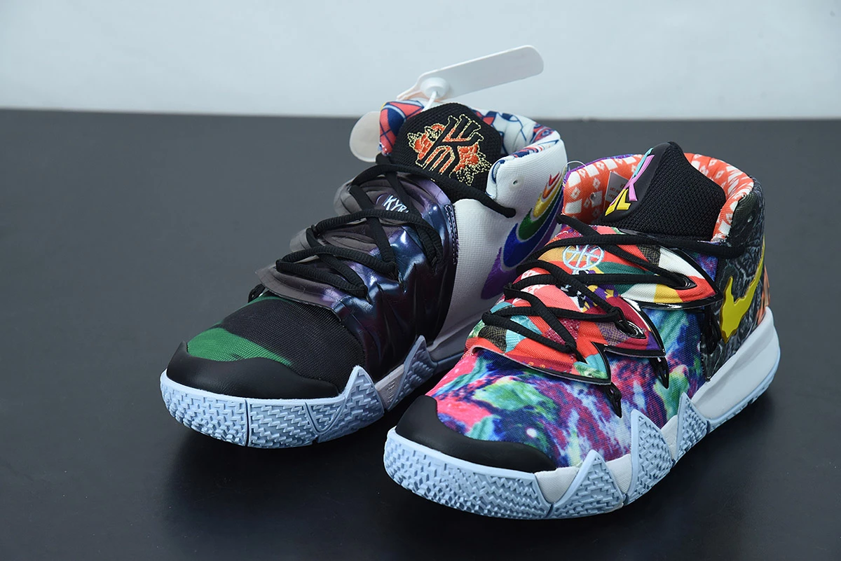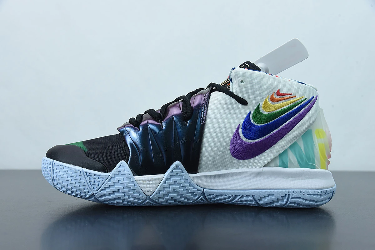this Nike Kybrid S2 which is also known as the Kyrie S2 Hybrid, it features various unique graphics across the upper along with a galaxy-like theme across the toe and shroud. On the heel, we have a translucent overlay that shows off exotic details. Other details include Yellow on the Swoosh, White on the midsole, and Light Blue on the rubber outsole.